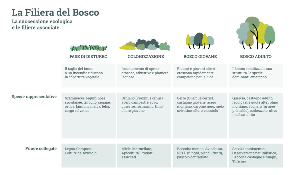 di specie presenti nelle aree boschive del comune, rispecchiando i valori alla base del progetto: la crescita della filiera, il monitoraggio e l'inclusione.